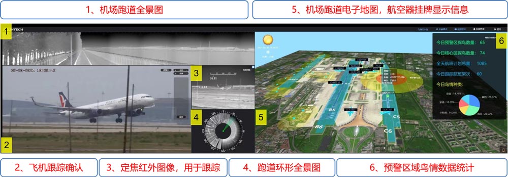飛機起飛、進近、下降時對機場凈空大鳥或鳥群跟蹤監視